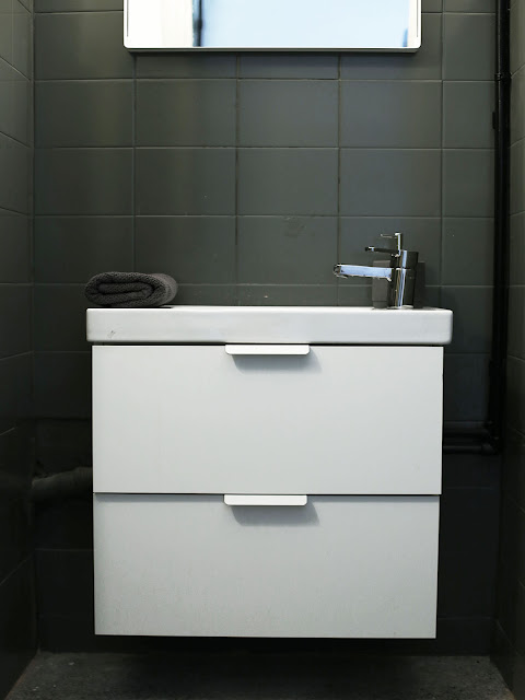 Ten wpis będzie chyba najkrótszy, ale co tu dużo pisać? Wystarczy spojrzeć na zdjęcia PRZED i PO. Efekt mówi sam za siebie! Łazienka wyjątkowo nie jest cała w bieli, chociaż biel kojarzy się z czystością, a czysta łazienka to fundament sukcesu. Tutaj wyjątkowo postawiłam na ciemnoszare kafelki, czarne rury i białą armaturę. Satysfakcja po zamalowaniu różowo-beżowych płytek była ogromna. Po pierwsze ten sposób okazał się niezwykle szybki i stosunkowo czysty (kucie kafli to remont przez duże R), a po drugie efekt zaskoczył dosłownie każdego.